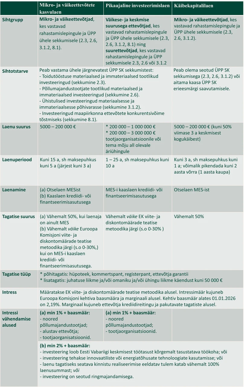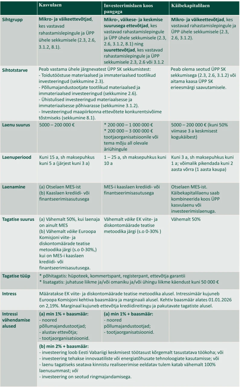 Laenud on mõeldud investeeringuteks, mis on kestlikud, uuenduslikud ning panustavad ettevõtete konkurentsivõimesse ja regionaalarengu soodustamisse.